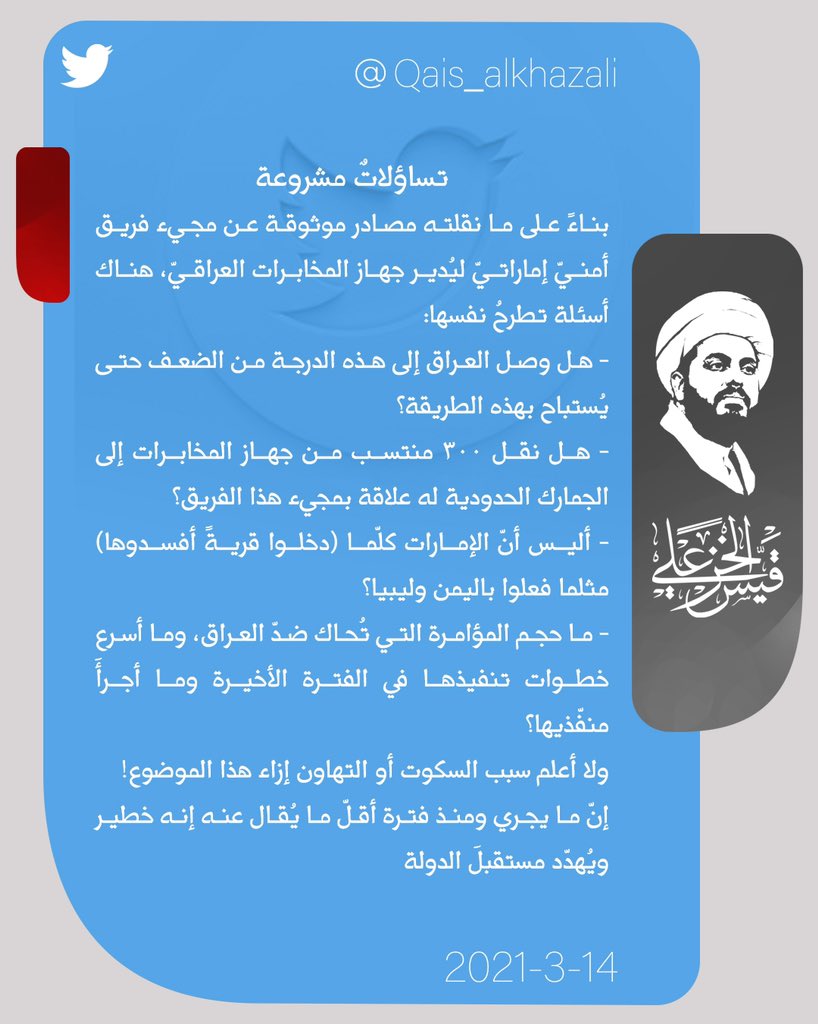 وطرح الشيخ الخزعلي عبر تويتر تساؤلات عما اذا وصل العراق الى هذه الدرجة من الضعف حتى يستباح بهذه الطريقة؟