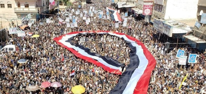 وأكد المتظاهرون أن الشعب اليمني هو اليوم أكثرُ صموداً وقوةً وثباتاً في مواجهة العدوان الأمريكي السعوديِ الإماراتي، مررددين شعارات ضد تحالف العدوان السعودي.