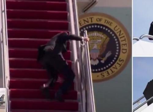 وأثيرت التكهنات حول صحة الرئيس الأمريكي بعد سقوطه المحرج 3 مرات أثناء صعوده درجات السلم المؤدي إلى طائرته الرئاسية خلال الأيام الماضية؛ الأمر الذي دفع كارين جان بيير، المتحدثة باسم الأبيض إلى إلقاء اللوم على «الطقس» الذي كان عاصفاً، على حد قولها.