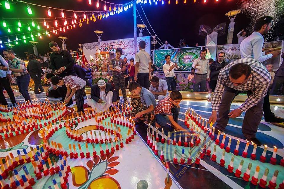 وفي مراسم هذه المناسبة، تم اشعال الشموع بعدد سنين عمر الامام المنتظر في كرنفال سنوي يقام بجوار مقام الامام المهدي (عج) في كربلاء المقدسة، وهذا العام وصلت اعداد الشموع الى الف ومئة وسبعة وثمانين شمعة كتبت فيها عبارة المهدي وارث الانبياء وسط مشاركة واسعة للزوار.