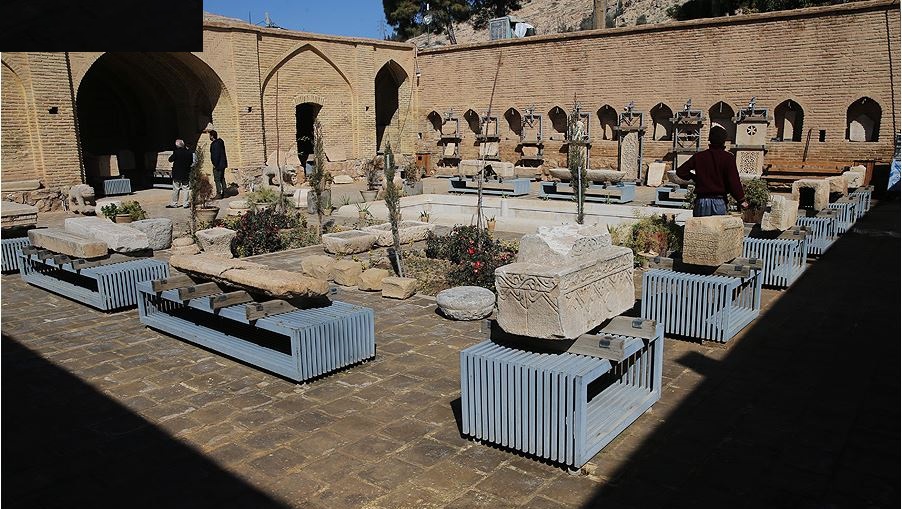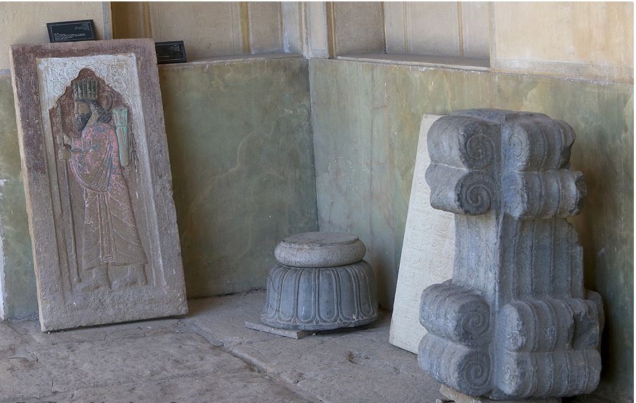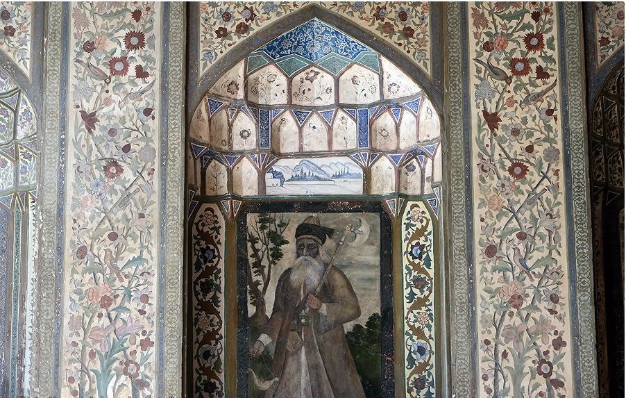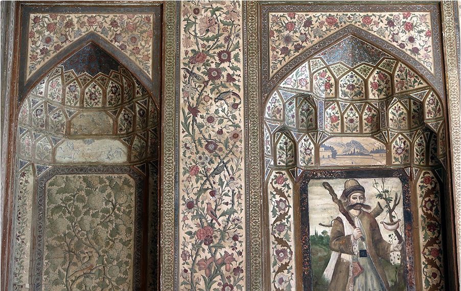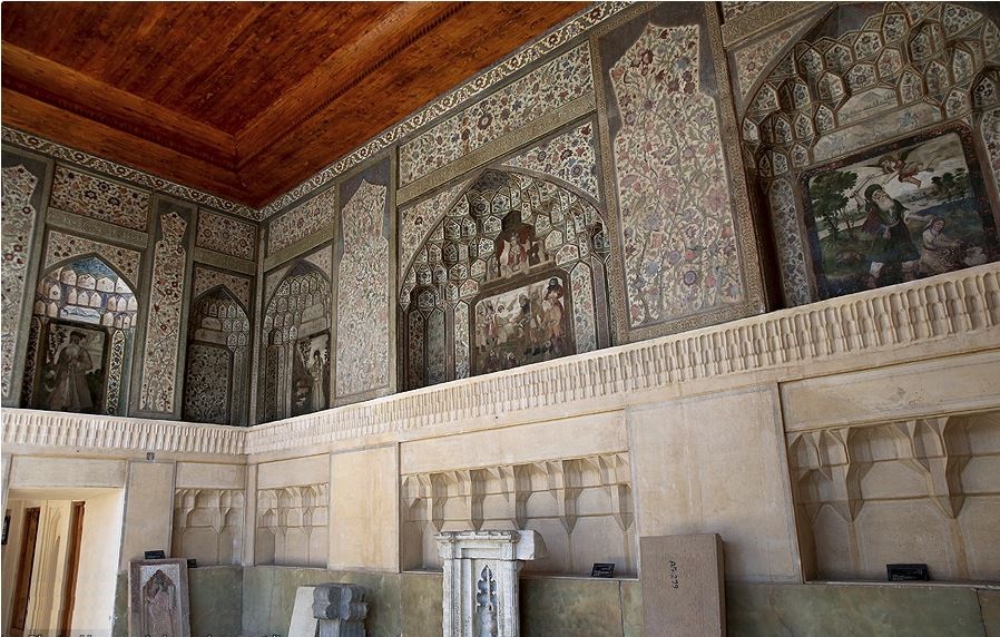 وفي الجهة الشمالية من هذه الحديقة هناك مبنى فيه غرفتان إحداهما على يمينه والأخرى على يساره، وهو متقوم على عمودين حجريين كل واحد منهما مكون من قطعة حجرية واحدة، ويعتبره الخبراء بأنه أحد الإنجازات العظيمة لكريم خان زند، وأمامه رواق سقفه من الخشب تحته أطواق فيها خمسة نقوش رائعة ملونة بالأصباغ الزيتية وقد نقشها الفنان الشهير في العهد الزندي "آغا صادق" ونظراً لروعتها وجمالها يمكن القول إنها من بدائع الرسوم الموروثة من ذلك العهد.