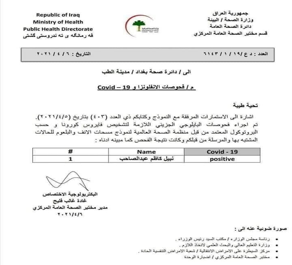 إصابة وزير عراقي بفيروس كورونا+ وثيقة