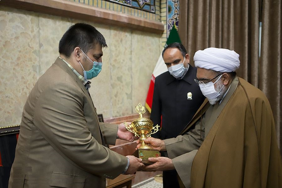 ايران-الكوثر: أهدى الرباع الإيراني وبطل إیران والعالم الأسبق لرفع الأثقال "حسین رضا زادة" الميداليات التي قد فاز بها في البطولات الوطنية والعالمية الى متحف العتبة الرضوية بمدينة مشهد المقدسة (شمال شرق إیران)، وذلك خلال الحفل الذي أقيم مساء السبت 10 إبریل 2021 بحضور الأمين العام للعتبة "الشيخ أحمد مروي".