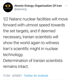 واضافت: منشأة نطنز النووية ستتحرك بأسرع ما يمكن نحو الأهداف المحددة، وإذا لزم الأمر سيعمل العلماء الإيرانيون على جعل العالم يشهد مرة أخرى القدرات العلمية للإيرانيين في التكنولوجيا النووية، وإن تصميم العلماء الإيرانيين لايزال قائما.