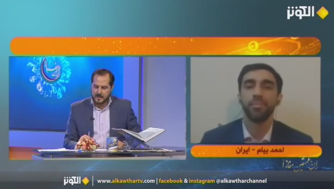 إن للمتقين مفازا– الكوثر: تلاوة قرآنية من المتسابق المشارك من إیران " أحمد بیام" حسب القرعة من سورة الأنعام المباركة في الليلة التاسعة من مسابقة "إن للمتقين مفازا" الدورة الرابعة عشرة لشهر رمضان 2021.