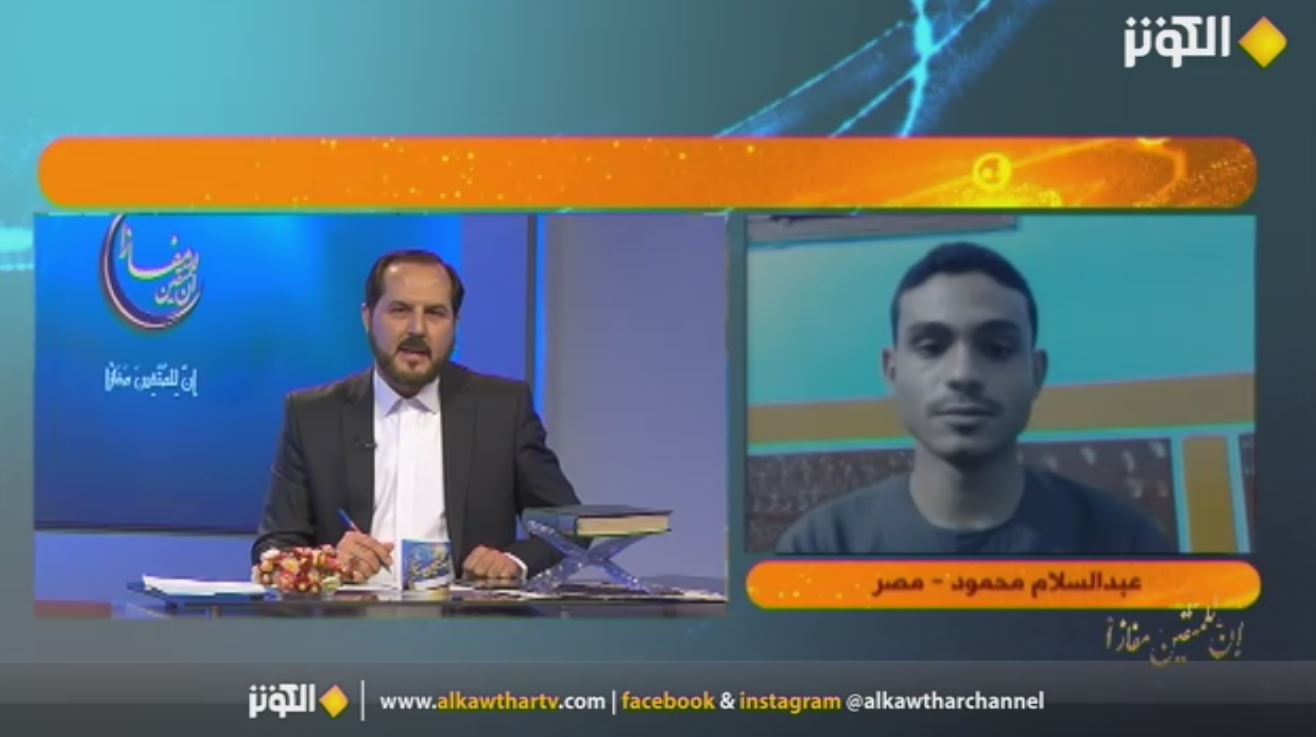 إن للمتقين مفازا– الكوثر: تلاوة قرآنية من المتسابق المشارك من مصر " عبد السلام محمود " حسب القرعة من سورة النور المباركة في الليلة العاشرة من مسابقة "إن للمتقين مفازا" الدورة الرابعة عشرة لشهر رمضان 2021.