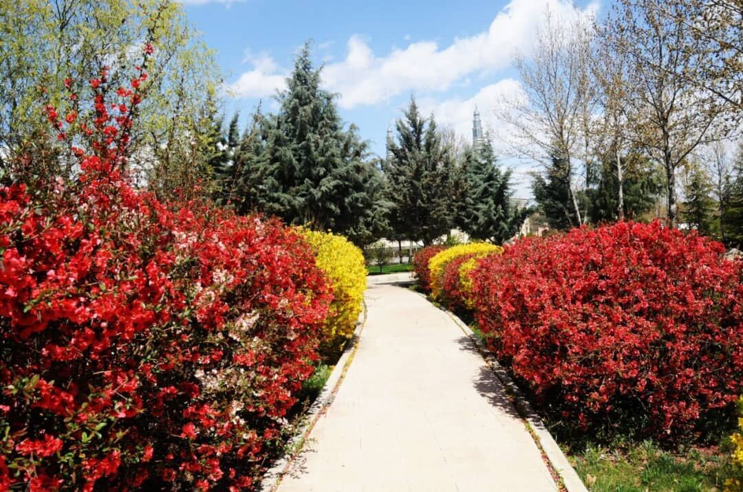 ايران-الكوثر: تفوح جامعة ارومية في محافظة اذربايجان الغربية شمال غرب ايران بعبق الزهور ورائحة الورود في فصل الربيع.