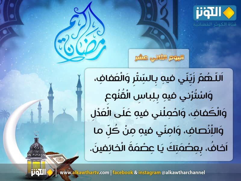 " اللَّهُمَّ ارْزُقْنِي فِيهِ السِّتْرَ وَ الْعَفَافَ، وَ أَلْبِسْنِي فِيهِ لِبَاسَ الْقُنُوعِ وَ الْكَفَافِ، وَ نَجِّنِي فِيهِ مِمَّا أَحْذَرُ وَ أَخَافُ، بِعِصْمَتِكَ يَا عِصْمَةَ الْخَائِفِينَ".