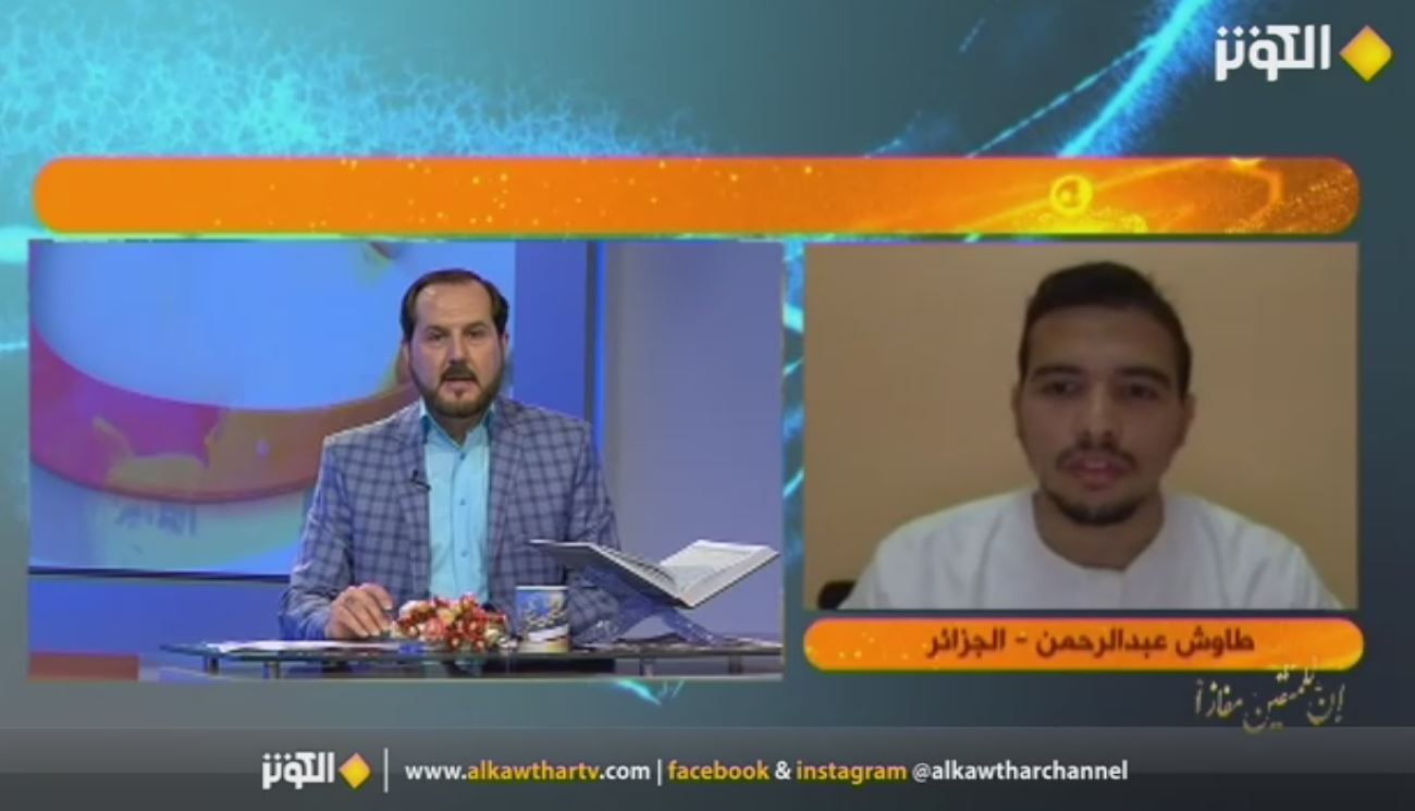 إن للمتقين مفازا– الكوثر: تلاوة قرآنية من المتسابق المشارك من الجزائر " طاوش عبد الرحمن " حسب القرعة من سورة النحل المباركة في الليلة الثانیة عشرة من مسابقة "إن للمتقين مفازا" الدورة الرابعة عشرة لشهر رمضان 2021.
