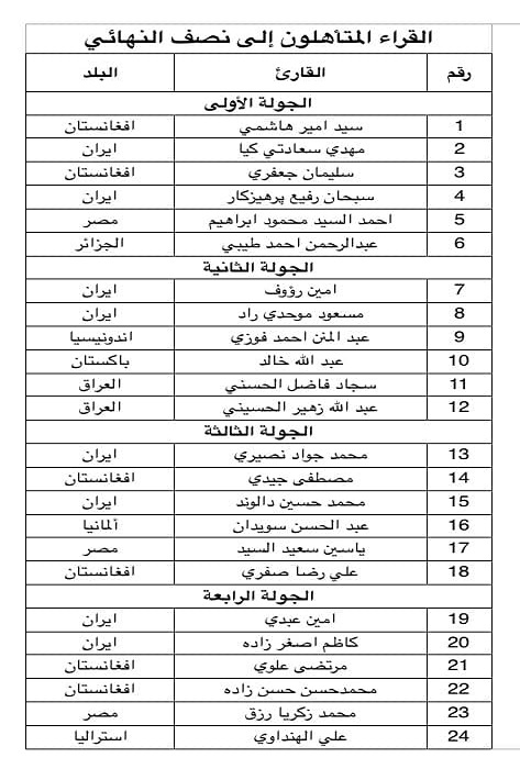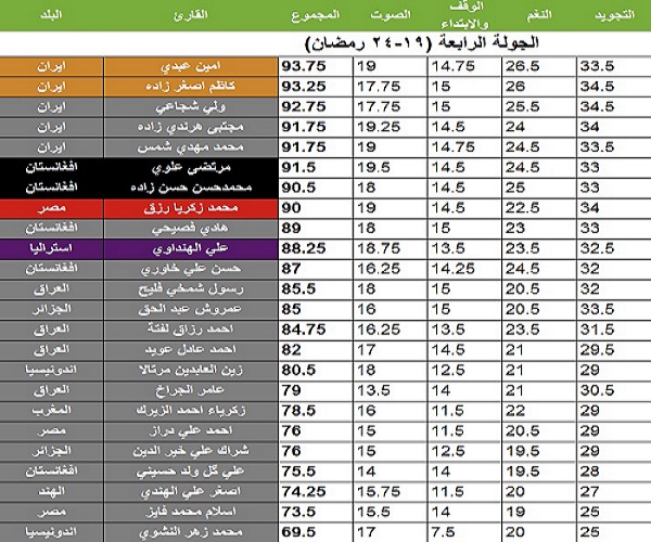 وتأهل عن الجولة الرابعة ستة قراء هم..