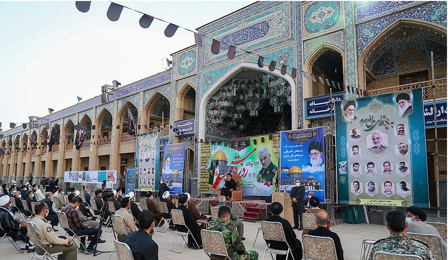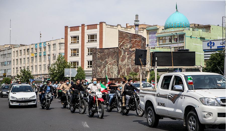 ايران-الكوثر: أقيمت مراسم إحیاء يوم القدس العالمي الذي دعا اليه الامام الخميني الراحل في الجمعة الأخيرة من شهر رمضان المبارك في العاصمة الايرانية طهران وبعض المدن الايرانية بشكل رمزي للوقاية من جائحة كورونا، حيث اقتصرت المشاركة على عدد رمزي من الايرانيين.