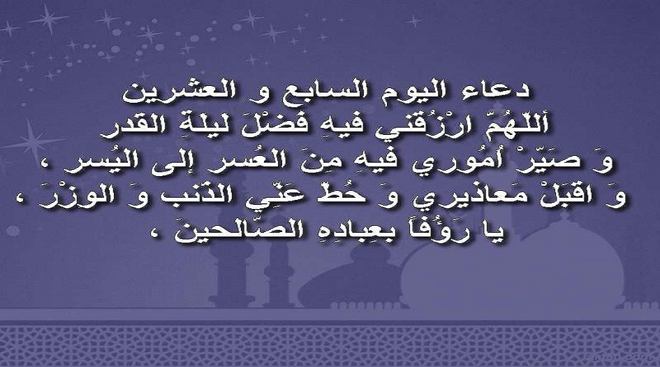 اللهم ارزقني فيه فضل ليلة القدر، وصير اموري فيه من العسر الى اليسر، واقبل معاذيري ، وحط عني الذنب والوزر، يا رؤوفاً بعباده الصالحين.