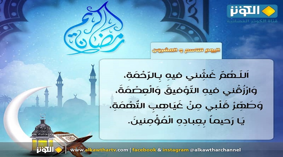 اَللّـهُمَّ غَشِّني فيهِ بِالرَّحْمَةِ ، وَارْزُقْني فيهِ التَّوْفيقَ وَالْعِصْمَةَ، وَطَهِّرْ قَلْبي مِنْ غَياهِبِ التُّهْمَةِ يا رَحيماً بِعِبِادهِ المُؤمِنين.