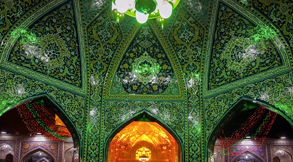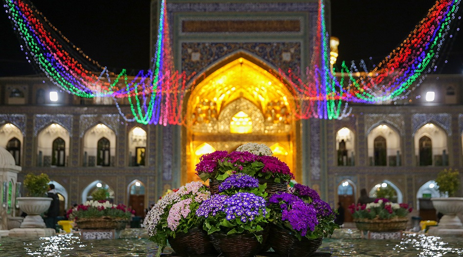 وزُينت بهذه المناسبة الميمونة، جميع الأروقة والساحات بالزهور والإضاءات الملونة والأعلام الخُضر المخطوطة بتحيات العيد.