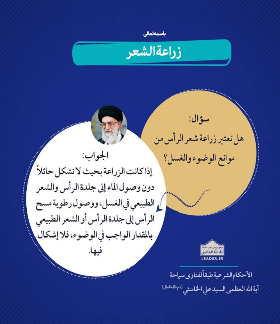 الجواب: إذا كانت الزراعة بحيث لا تشكل حائلاً دون وصول الماء إلى جلدة الرأس والشعر الطبيعي في الغسل، ووصول رطوبة مسح الرأس إلى جلدة الرأس أو الشعر الطبيعي بالمقدار الواجب في الوضوء، فلا إشكال فيها.