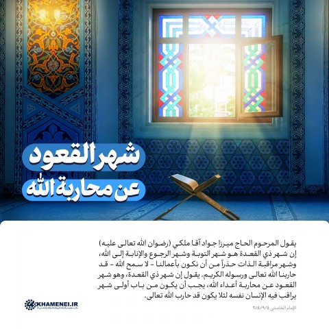 وكذلك يقول: إن شهر ذي القعدة، وهو شهر القعود عن محاربة أعداء الله، يجب أن يكون من باب أولى شهر يراقب فيه الإنسان نفسه لئلا يكون قد حارب الله تعالى. ويذكر العمل المعروف في يوم الأحد من ذي القعدة، ويؤكد ويصر على أداء هذا العمل.