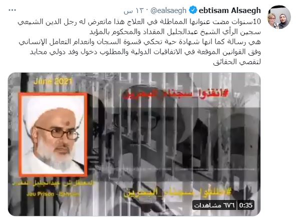 وكان المقداد قد وجه رسالة من سجنه قبل أيام، قال فيها "لكي لا أكون مقصرا في حق نفسي، فأنا أتعرض لإهمال وتقصير يرقى إلى حد التعذيب، أحملهم مسؤولية أي شيء يعرض علي".