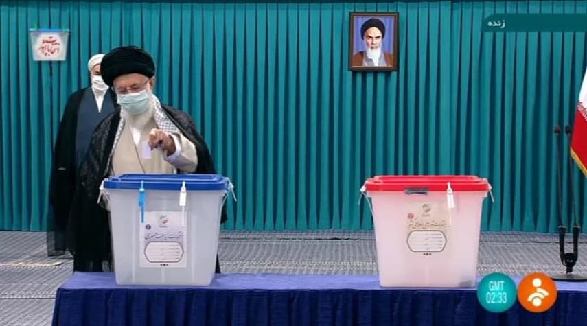 وادلى سماحة قائد الثورة الاسلامية اية الله العظمى السيد علي الخامنئي صباح الیوم الجمعة بصوته في المركز الانتخابي بحسينية الإمام الخميني (رض)، في الدقائق الأولى من بدء عملية الاقتراع في الانتخابات الرئاسية في ايران.