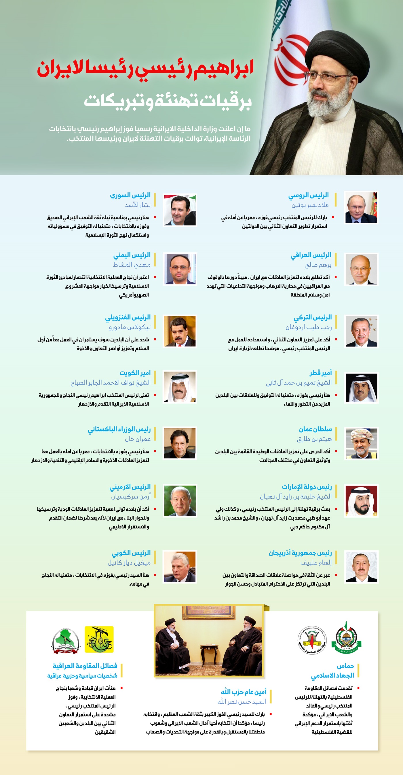 السيد ابراهيم رئيسي رئيسا لايران .. برقيات تهنئة وتبريكات