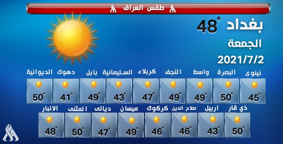 اليكم حالة الطقس المتوقعة في العراق لليوم الجمعة 2021/7/2.