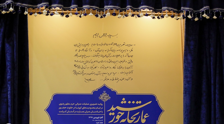 من جانبه أثنى وکیل متولي العتبة الرضویة المقدسة مالك رحمتي على الأعمال الترميمية والفنية التي أجريت في العتبة، قائلا إن إغلاق الحرم الرضوي الشريف في العام الماضي بسبب تفشي وباء كورونا كان محزنا جدا، لكن العتبة استغلت الفرصة، لترميم أقسام مختلفة في الحرم المطهر، بمشاركة 120 فنانا في مجالات الرسم والخط، و30 مختصا في الإنشاء والترميم ومجلات متنوعة أخرى، فكانت نتيجة هذه الجهود سعادة القائد الثورة الإسلامية (دام ظله).