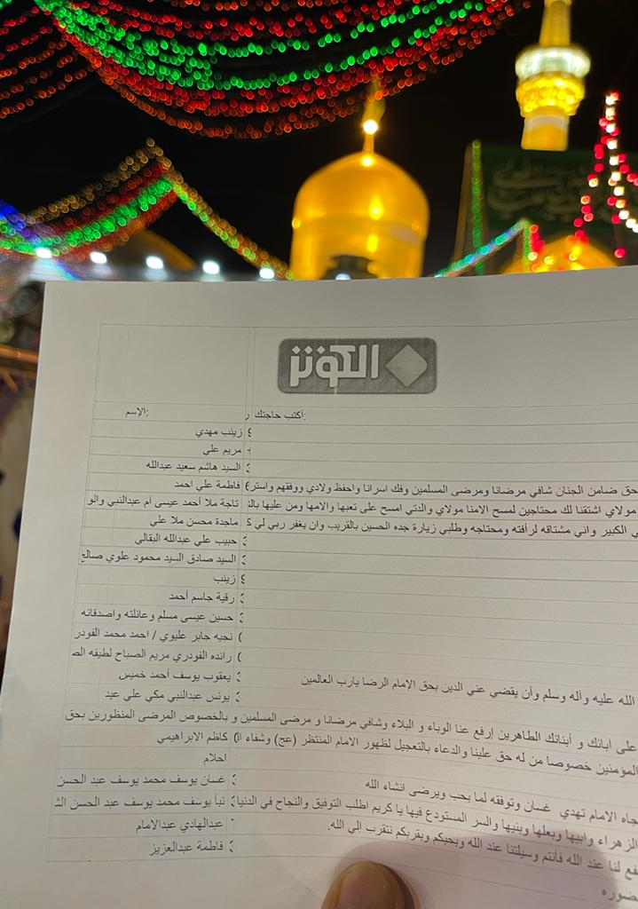 وتمت قراءة الزيارة الخاصة بالامام الرضا عليه السلام وأداء ركعتين صلاة الزيارة بالنيابة عن الأسماء المسجلة. بامكانكم الضغط هنا لمشاهدة الأسماء.