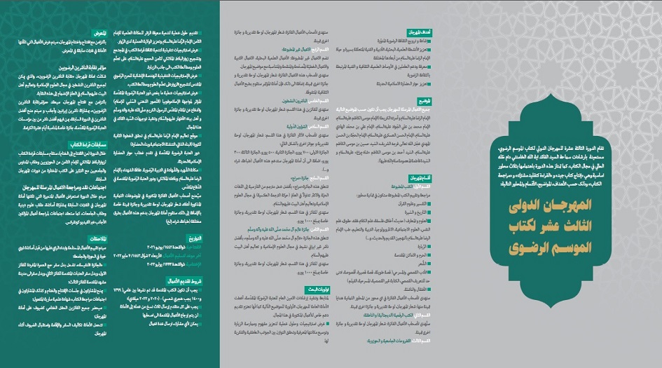 وللمزيد من المعلومات حول المهرجان "الموسم الرضوي" الدولي للكتاب، يمكنكم زيارة موقع (library.razavi.ir/ketabsal ).