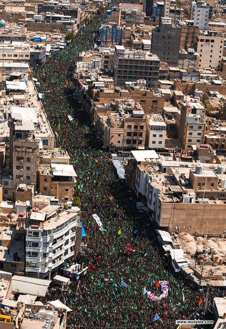 حيث رفع المعزيين صور قادة النصر الشهيدين الحاج قاسم سليماني وابو مهدي المهندس في هذه المسيرة باعتبارهم من منابر الشهادة الذين رفعت رايتاتهم في الصحن الحسيني(ع) او في بعض المواكب التي اطلقت عليها اسم قادة النصر.