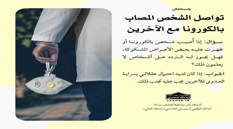 سؤال: إذا أصيب شخص بالكورونا او ظهرت عليه بعض الاعراض المشكوكة، فل يجوز له التردد على أشخاص لا يعلمون ذلك؟