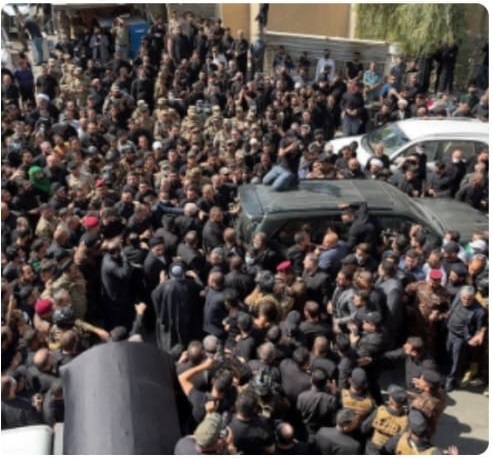 وانطلق موكب تشييع جثمان آية الله السيد محمد سعيد الحكيم (قدس سره) من حسينية النجف الاشرف (المشاهدة القديمة) باتجاه مراقد الامام الحسين (عليه السلام) وأبالفضل العباس (سلام الله عليه) في كربلاء المقدسة.