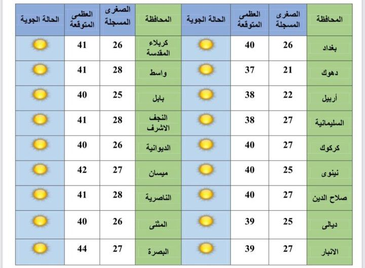 وذكرت الهيئة في بيان، أن “درجات الحرارة في بغداد يوم غد دون الـ 40″.