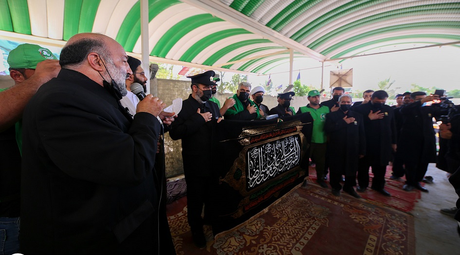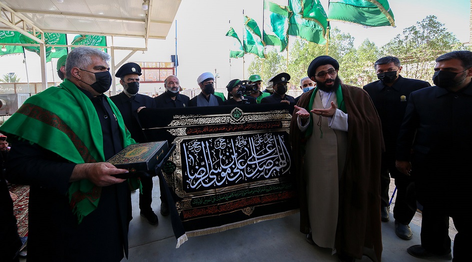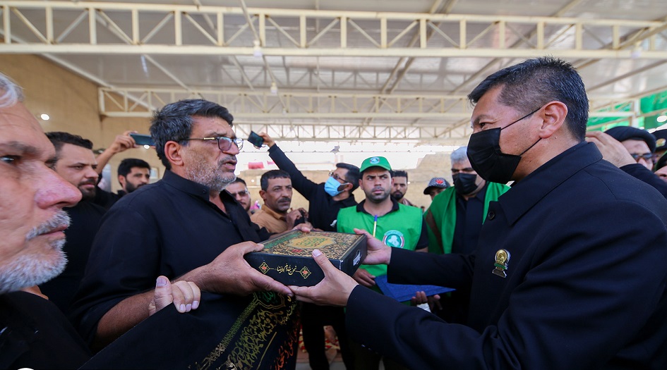 بالصور...العتبة الرضوية المقدسة توزع الهدايا والنذورات على المواكب الحسينية في طريق كربلاء