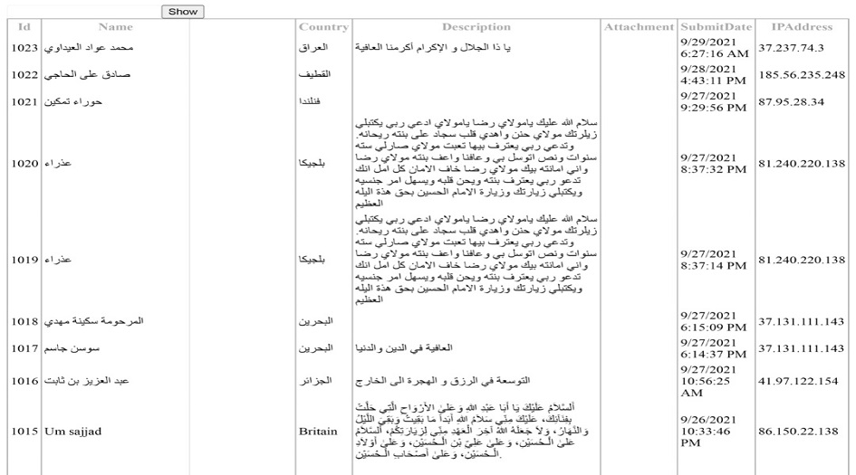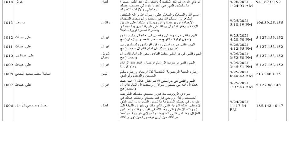 وتمت قراءة الزيارة الخاصة بالامام الرضا عليه السلام مباشرة وأداء ركعتين صلاة الزيارة بالنيابة عن الأسماء المسجلة بامكانكم الضغط هنا لمشاهدة الاسماء