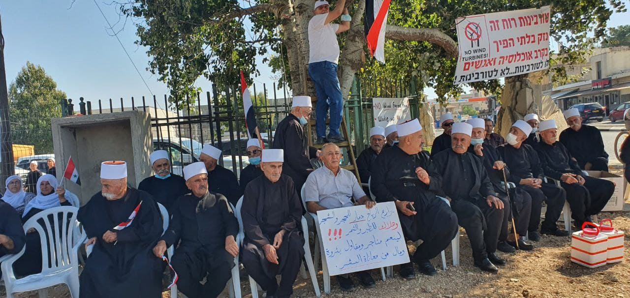 وفي سياق متصل نظم الجولان السوري المحتل وقفه ضد مشروع التوربينات الهوائية.