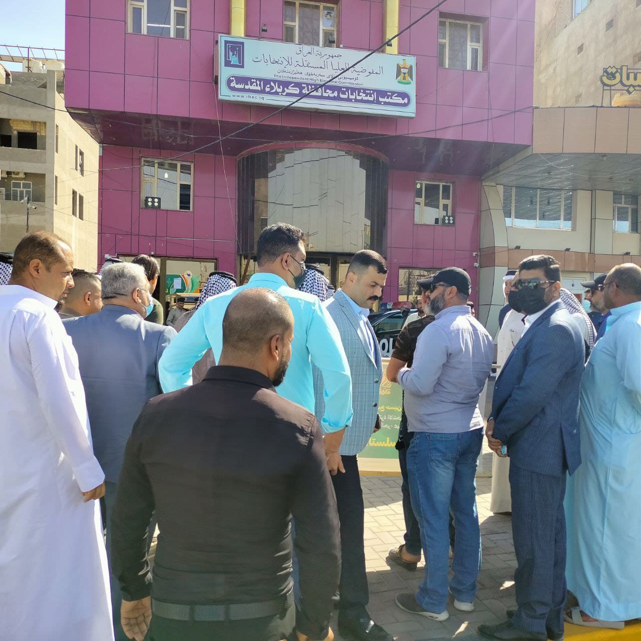 وتجمع المتظاهرون أمام مقر المفوضية العليا المستقلة للانتخابات في محافظة كربلاء المقدسة، احتجاجا على نتائج الانتخابات.