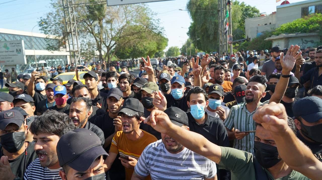 ويعتصم هؤلاء في ساحة "جسر الطابقين" وسط بغداد منذ الثلاثاء الماضي، وتحركوا مساء امس السبت باتجاه الجسر الذي يعد أحد مداخل المنطقة الخضراء.