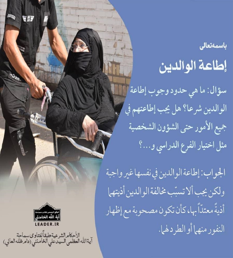 الرأي الشرعي لسماحة الامام الخامنئي حول حدود اطاعة الوالدين.