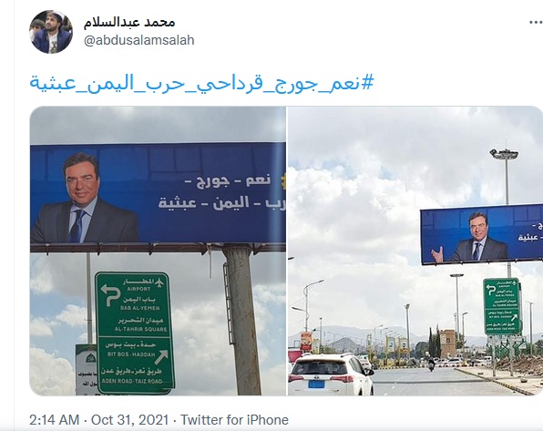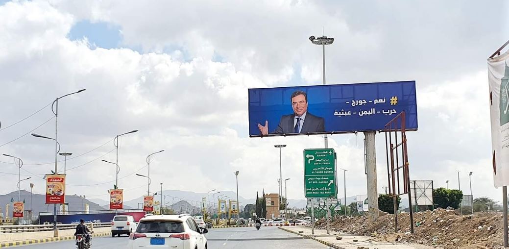 ونشر العديد من الناشطين في مواقع التواصل الاجتماعي صورة للافتة، معربين عن تضامنهم مع قرداحي، بعد تصريحاته حول حرب السعودية على اليمن.