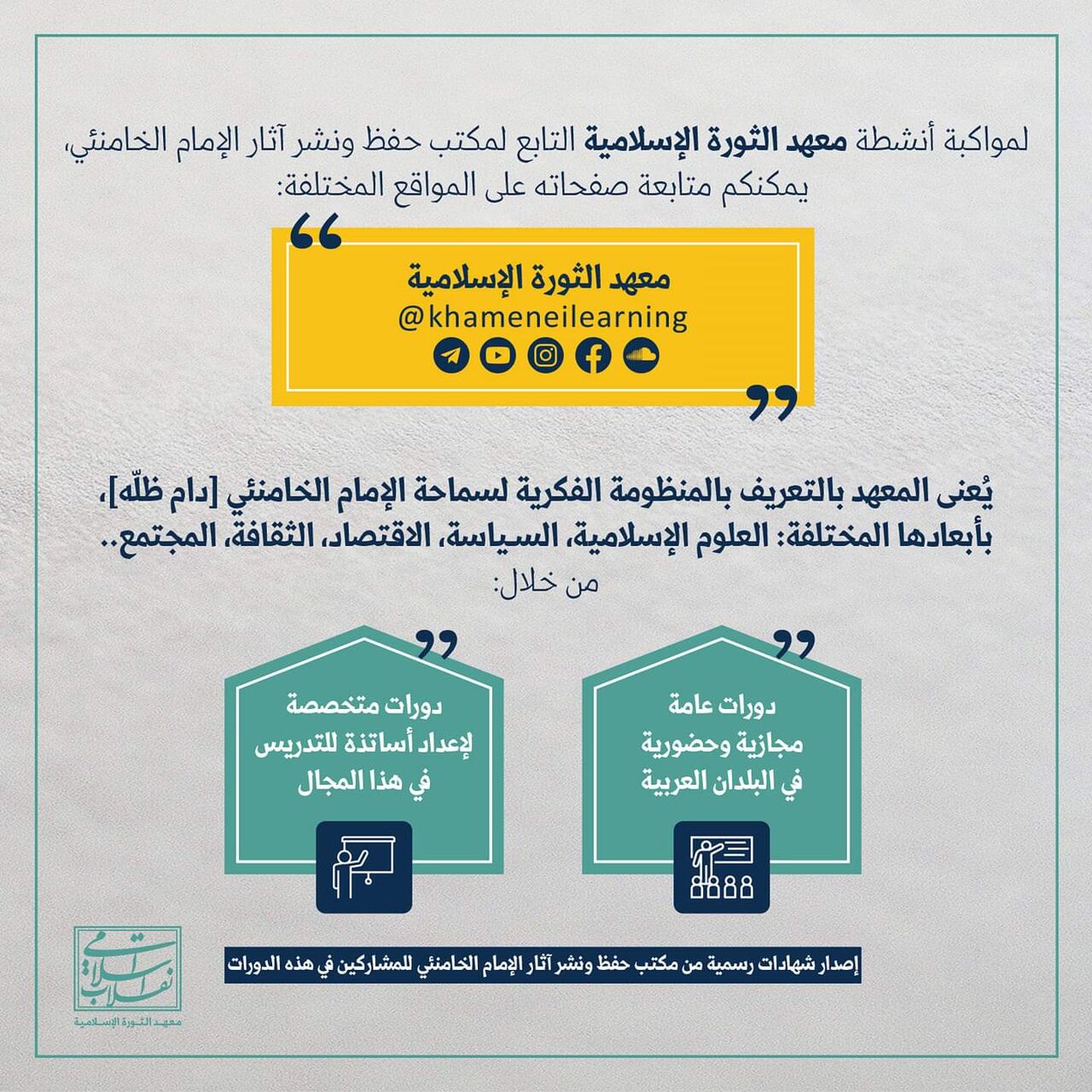 ولمواكبة أنشطة معهد الثورة الإسلامية التابع لمكتب حفظ ونشر آثار الإمام الخامنئي، يمكنكم متابعة صفحاته على مختلف مواقع التواصل الاجتماعي على العناوين التالية: