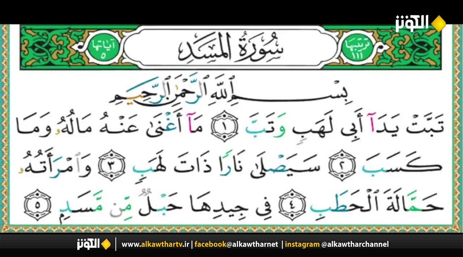 اقرأ أيضا: سورة المسد بصوت الأستاذ شهريار برهيزكار "مكتوبة "