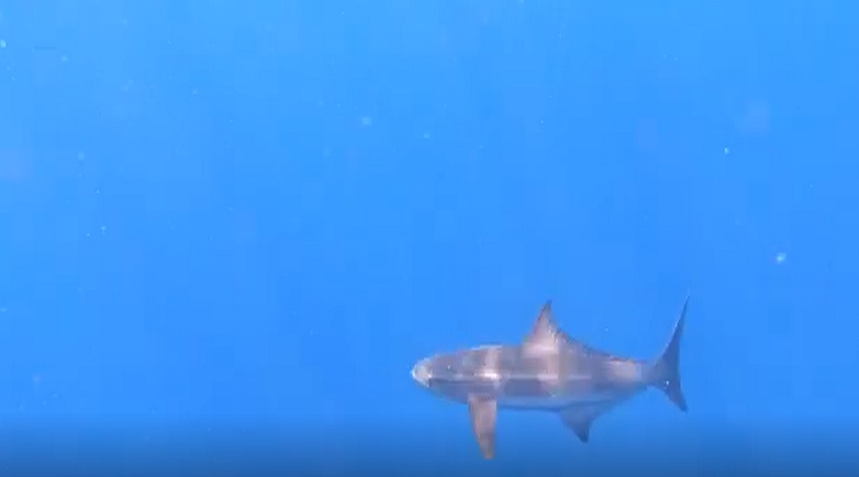 ويبين الفيديو مواصلة سمكة القرش البحث عن غذائها على الرغم من إصابتها الجسيمة.