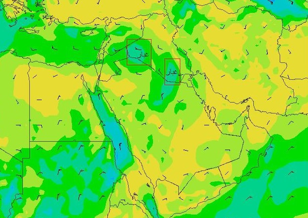 وقال المتنبئ الجوي، صادق عطية، في منشور على صفحته في الفيسبوك :"إنكسار بالرياح السطحية فجر او صباح الخميس جنوب العراق مع نشاطها غرب البلاد". وأشار الى ان هذه الإنكسار "يسبب تصاعداً للغبار وتردي الرؤية الافقية". يشار الى ان سماء محافظات القاهرة الكبرى تشهد اليوم وصول العاصفة الترابية، حيث يشهد الجو حالة من انخفاض في درجات الحرارة، بالإضافة لوجود الرياح المحملة بالأتربة. ووصلت العاصفة الترابية مما أدى إلى انخفاض الرؤية الأفقية في السماء وغياب الشمس عن السطوع في موعدها بسبب العاصفة التي تغطي سماء القاهرة الأن. ومن المرجح ان تؤثر هذه العاصفة الترابية على دول بلاد الشام وربما العراق.