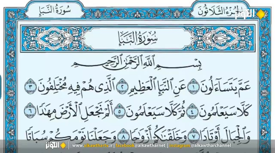 القرآن الكريم_الكوثر: سورة النبأ - سورة 78 - عدد آياتها 40