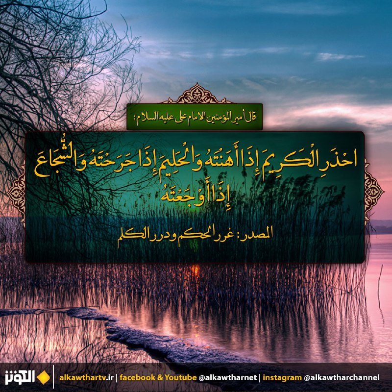 احْذَرِ الْكَرِيمَ إِذَا أَهَنْتَهُ وَالْحَلِيمَ إِذَا جَرَحْتَهُ وَالشُّجَاعَ إِذَا أَوْجَعْتَهُ