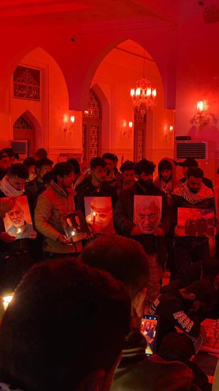 نشاهد معا صور احياء ليلة استشهاد القائدين الحاج ابو مهدي المهندس والحاج قاسم سليماني عند مزار الشهيد المهندس.
