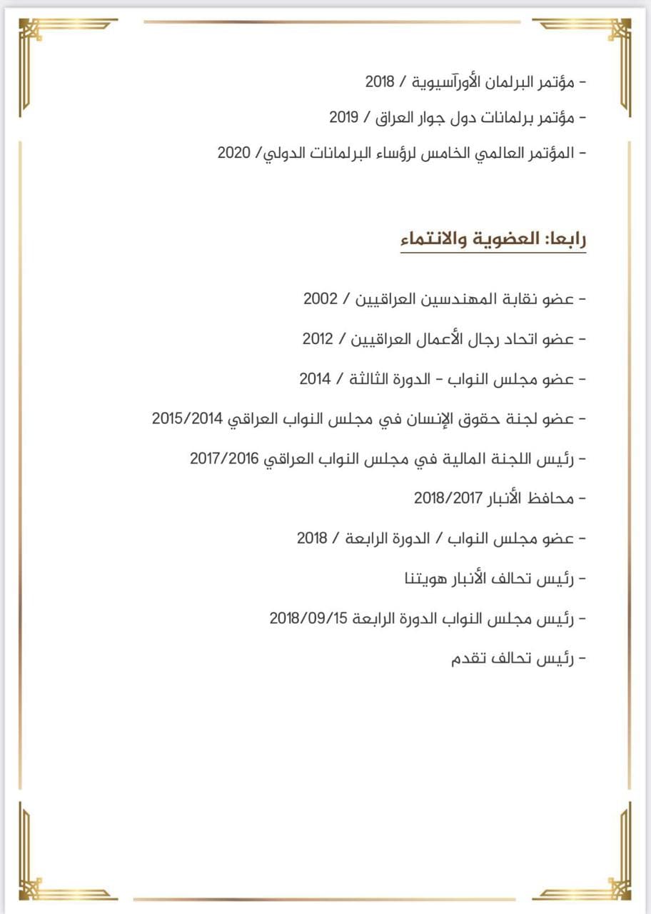 بعد فوزه بعضوية مجلس النواب العراقي انتخب رئيسا للمجلس في السادس عشر/ مارس / 2006، حتى الثالث والعشرين / ديسمبر / من العام 2008.