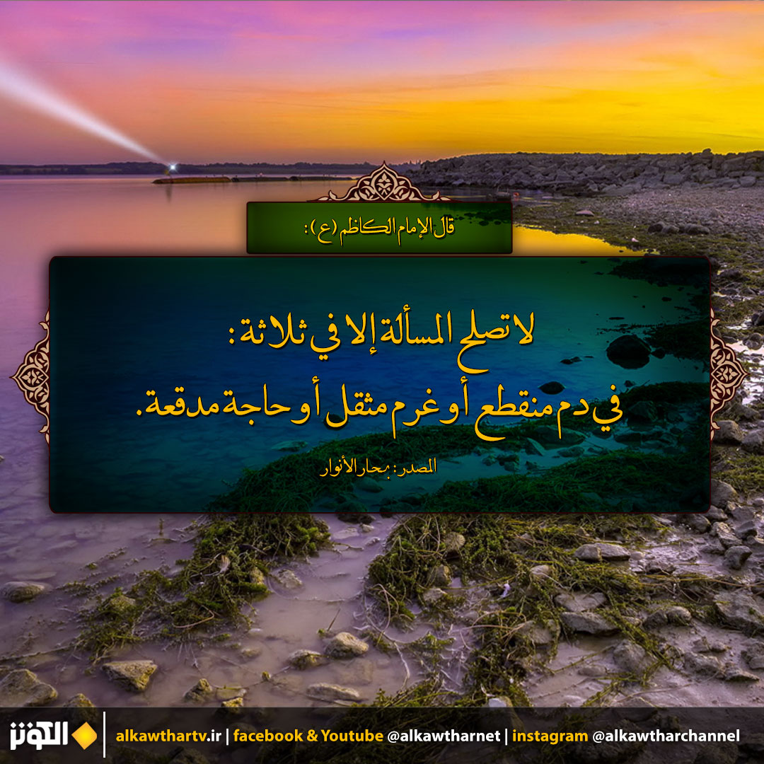 لا تصلح المسألة إلا في ثلاثة، في دم منقطع، أو غرم مثقل أو حاجة مدقعة .