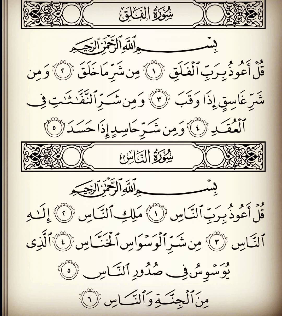 قُلۡ أَعُوذُ بِرَبِّ ٱلۡفَلَقِ (1) مِن شَرِّ مَا خَلَقَ (2) وَمِن شَرِّ غَاسِقٍ إِذَا وَقَبَ (3) وَمِن شَرِّ ٱلنَّفَّٰثَٰتِ فِي ٱلۡعُقَدِ (4) وَمِن شَرِّ حَاسِدٍ إِذَا حَسَدَ (5)