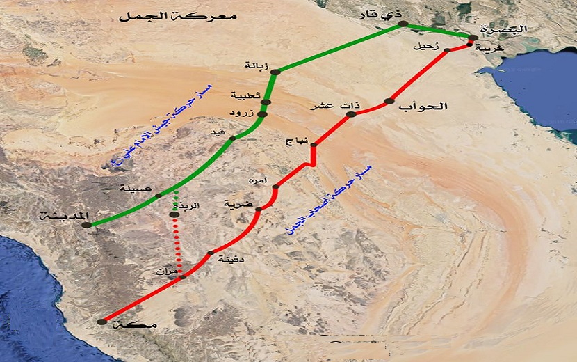مسار حركة جيش الإمام علي (ع) ومسار حركة أصحاب الجمل