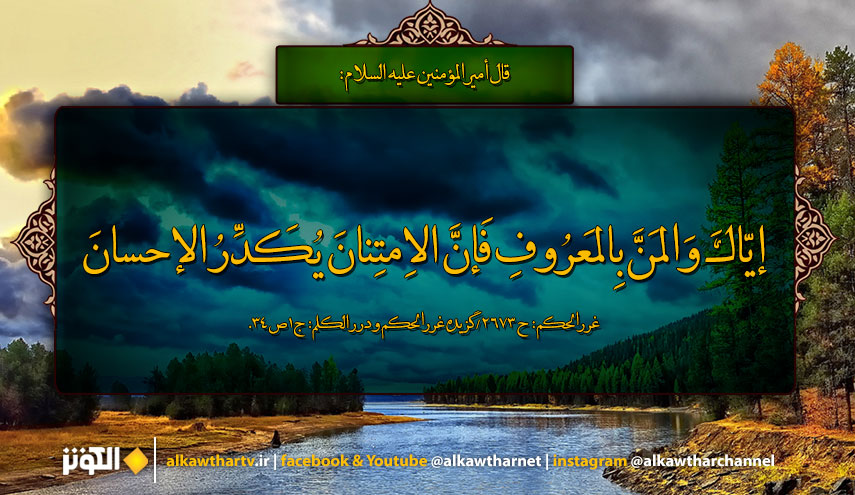 إِيَّاكَ وَ اَلْمَنَّ بِالْمَعْرُوفِ فَإِنَّ اَلاِمْتِنَانَ يُكَدِّرُ اَلْإِحْسَانَ .